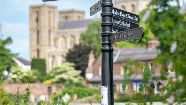 1 Starting outside & facing the main west doors of Ripon Cathedral follow the tarmac path through the Cathedral grounds, exiting through the iron gates.
