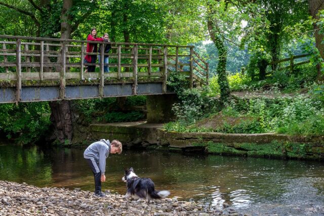 14 At the end of the road, turn left, cross the footbridge & bear right to follow the riverside path.